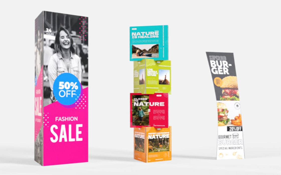 Progettati su misura per il tuo brand, sono perfetti per mettere in risalto offerte speciali, nuovi arrivi o